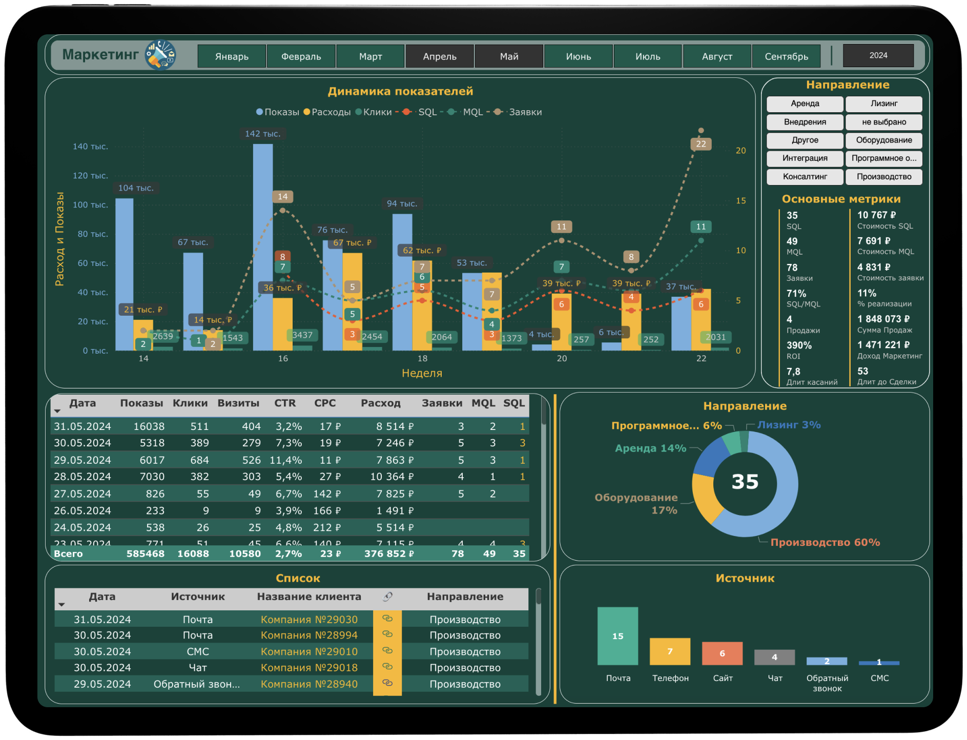 Удобное получение отчетов ускоряет принятие решений и прогнозирование. Динамичные графики заменяют громоздкие таблицы и файлы.